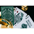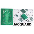 Bicycle Jacquard gets its design inspiration from complex, ornate patterns often woven into fabric, resulting in beautiful displays. The Bicycle Jacquard tuck case features emerald green and silver foil details woven throughout, creating a dazzling and dramatic appeal.